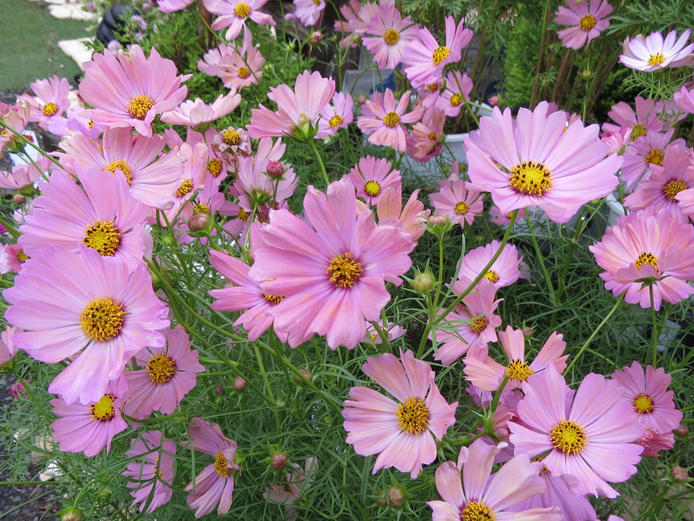 | オ レンジキャンパス ピンク色が濁ったようなオレンジキャンパスというコスモスです。玉川大学で作出されたコスモスです。 1987年にイエローガーデンという黄色のコスモスが、2002年にイエローキャンパス、そのあとに このオレンジキャンパスや、赤いコスモスのデープレッドキャンパスが同大学から作出されました。 毎年秋に、これらのコスモスは昭和記念公園(東京・立川市)で見ることができます。 |